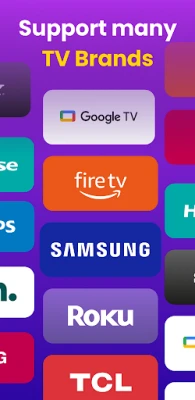 The universal remote control app supports a wide range of TV brands and streaming devices, including: