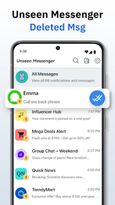 Read, manage, and recover your messages with Unseen Messenger: Deleted Msg, granting you newfound freedom in your messaging experience. Enjoy safer, more private communication with features like the Unsent Messenger Reader, Recover Deleted Messages, and Unseen Messages Recovery. With Message Recovery for Android, you can control your notifications and stay ahead without leaving a digital footprint.