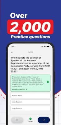 Prepare with confidence by answering more than 2,000 questions derived directly from the official study materials for the US Immigration Test. This extensive question bank allows you to test your knowledge and identify areas that require further study.