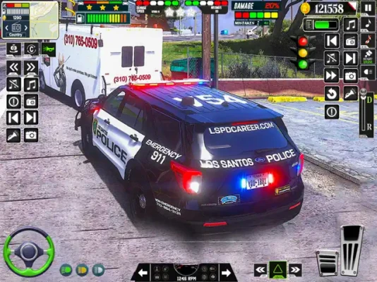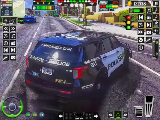 The US Police Car 3D Cop Simulator introduces a garage filled with an impressive array of police vehicles, each with unique specifications. This feature enhances your driving experience, allowing you to choose the perfect car for your patrol duties. With various control options, including steering, gyro, and buttons, you can master the art of driving in this police simulator.