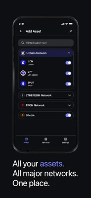 Managing multiple currencies can be a hassle, but UWallet simplifies this process. With support for various assets and key networks all in one place, you can easily track and manage your diverse portfolio without the need for multiple applications.
