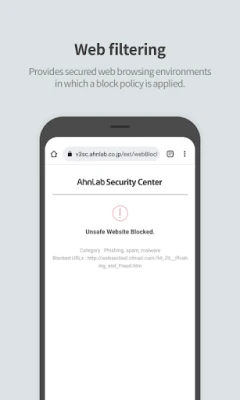 To ensure a secure browsing experience, V3 OS implements web filtering. This feature applies a block policy that protects users from accessing malicious websites, thereby creating a safer online environment.