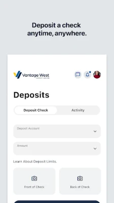 Say goodbye to trips to the bank! With the Vantage West mobile app, you can deposit checks from the comfort of your home or while on the go. Simply take a photo of your check, and the app will handle the rest. This feature saves you time and provides a hassle-free banking experience.