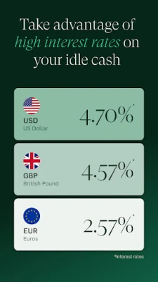 With Vault’s SmartCash, you can earn an impressive 4.70%* interest on your idle cash. This feature allows you to earn daily interest on your deposits while maintaining the flexibility to withdraw funds at any time. Enjoy competitive returns without the stress of market timing, as rates are determined by the U.S. Federal Reserve. *SmartCash is available in USD, EUR, and GBP, with rates varying by currency.