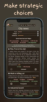 - Engage in randomized city events through mini-games and critical decision-making.