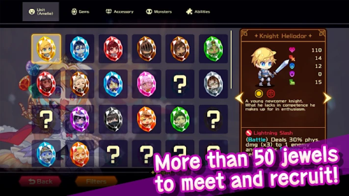Throughout your exploration, you will encounter various jewels scattered across the dungeon. These jewels are not just collectibles; they are essential units that enhance your party's strength. As you gather these precious gems, aim to collect duplicates. Doing so allows you to upgrade their stats, making your team even more formidable.