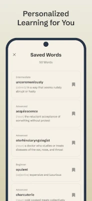 Experience the joy of learning with our Word of the Day feature, which introduces a new word each day. Accompanied by stunning visuals, clear definitions, synonyms, and practical usage examples, this feature allows you to build your vocabulary one word at a time. You'll soon find yourself using new words with confidence, transforming vocabulary building into an enjoyable and addictive educational experience.