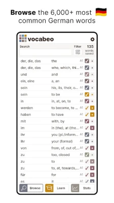 At the heart of Vocabeo lies a comprehensive dictionary that includes thousands of essential German words. This resource is designed to cater to learners at all proficiency levels, from beginners to advanced speakers. With a focus on the most frequently used terms, users can build a solid foundation in the German language.