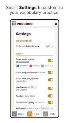 Whether you are just starting your journey in learning German or looking to refine your skills, Vocabeo is tailored to meet your needs. Its user-friendly interface and adaptable learning paths make it suitable for everyone, from casual learners to serious language enthusiasts.