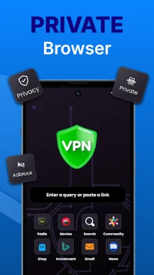 - Private Browser: Browse the web anonymously with our integrated private browser. Keep your online activities completely confidential.