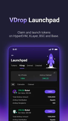 Every action counts! Earn VPoints on every Hyperliquid perpetual trade, swap, or referral. The more points you accumulate, the greater your chances for exclusive airdrops and rewards. Our VDrop Launchpad on HyperEVM is designed for discovering and supporting new tokens, making it an essential tool for token creators and community-driven airdrops.