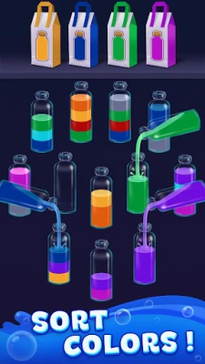 - Swapping Liquids: To begin, tap on two bottles to swap their liquids. You can pour the water from one bottle into another, but there are specific rules to follow.