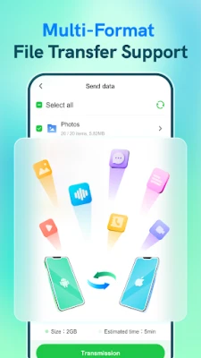 With WatsGo, transferring essential data such as photos, videos, audio files, and documents from your Android device to your new iPhone is a breeze. The app provides a smart cloning experience that ensures all your important files are moved quickly and efficiently.