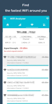 The WiFi Analyzer and WiFi Test app supports both 2.4GHz and 5GHz frequencies, giving you a complete picture of your wireless environment. With this dual-band support, you can easily switch between frequencies to find the best performance for your devices. The app offers detailed information about nearby WiFi signals, helping you understand the landscape of your wireless network.