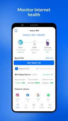 WiFiman allows users to instantly detect available WiFi networks and Bluetooth Low Energy (LE) devices in their vicinity. This feature is particularly useful for identifying the best networks to connect to, ensuring a seamless online experience. With just a few taps, you can view all nearby networks, making it easier to choose the most reliable connection.