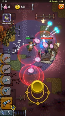 Dive into the action with ease using intuitive one-finger controls. Your reliable six-shooter automatically aims and fires, allowing you to concentrate on evading danger and racking up impressive zombie kills. As you mow down the relentless hordes of the undead, collect valuable coins, brain essence, and experience points to enhance your survival journey.