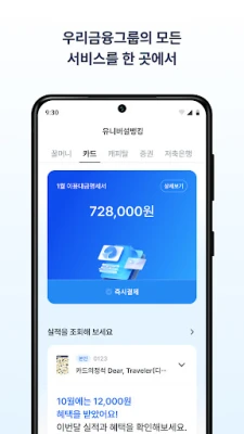 Our WON Banking platform allows you to explore and utilize a variety of products and services from the Woori Financial Group, including cards, capital, securities, and savings bank offerings. From browsing to signing up, everything can be done conveniently through our app, making it easier than ever to manage your financial portfolio.