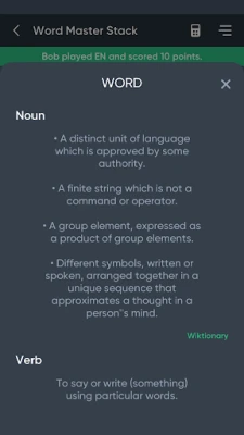 Expand your vocabulary with the built-in word definitions feature. After each turn, you can explore the meanings of the words you’ve played, enhancing your language skills while you play.
