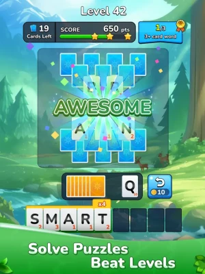 - Innovative Gameplay: Enjoy a unique blend of word games and solitaire. Form words using letter cards to clear the board in this exciting twist on traditional solitaire.