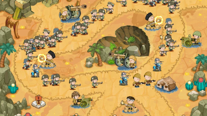 Construct, upgrade, and manage a diverse range of defensive towers, including machine gun nests, artillery cannons, and anti-tank turrets. Design the ultimate defense layout to effectively counter each wave of enemy attacks, ensuring your strategy adapts to the evolving battlefield.