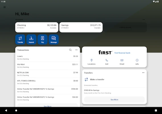 First Financial offers a robust platform for managing your deposit, loan, and credit card accounts with ease. From real-time alerts to customizable dashboards and comprehensive money management tools, you have everything you need to take control of your finances. Experience the convenience and security of banking with First Financial, and empower your financial journey today.