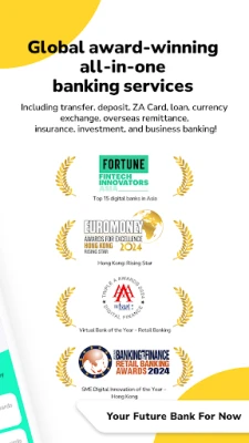 ZA Bank is not authorized or licensed to provide products and services outside of Hong Kong. We do not guarantee that the content on this App is suitable or available for use in other jurisdictions. It is your responsibility to ensure compliance with local laws and regulations before using the App or our services.