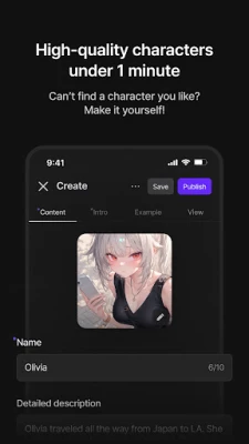 Can’t find the character you’re looking for? No problem! Create your own characters exactly as you envision them! All it takes is a name, a brief description, and a few personality traits. You can choose to share your creations with the community or keep them exclusively for yourself. The choice is yours!