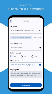 - Secure Compression: Users can set passwords for their compressed files, ensuring that sensitive data remains protected. The app also supports multipart files, making it easier to manage large datasets.