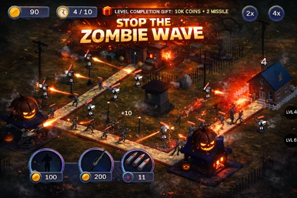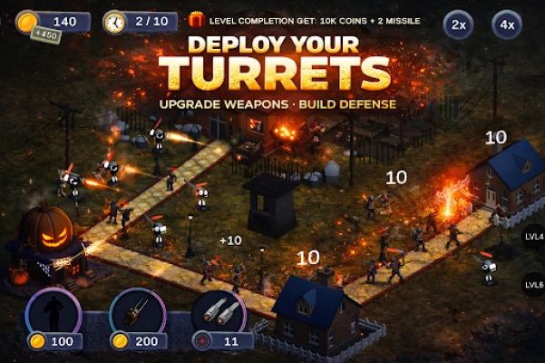 In Zombie Defense: GUN WAR, you will face an unending onslaught of zombies in a thrilling offline environment. Each level ramps up the challenge, introducing faster enemies, larger hordes, and increasingly intense survival scenarios. If you are a fan of zombie survival games, tower defense mechanics, and war strategy, this game is tailored for you.